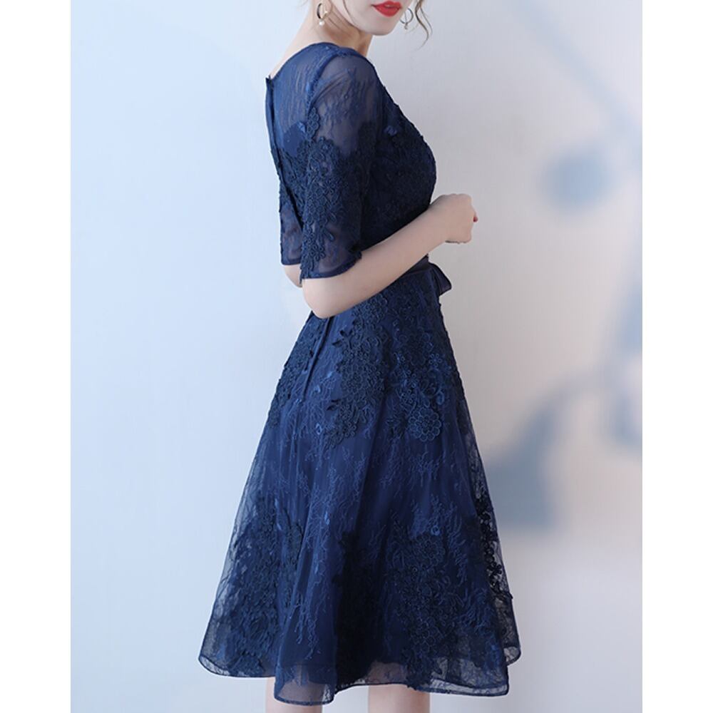 レース チュール ネイビー 花柄 刺繍 フレア 大人 ワンピース ドレス ★