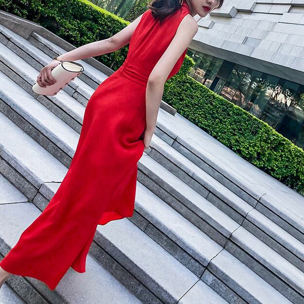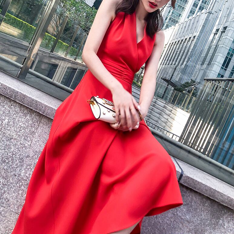 ワンピース Vネック マキシ丈 二次会 ホームパーティー 謝恩会