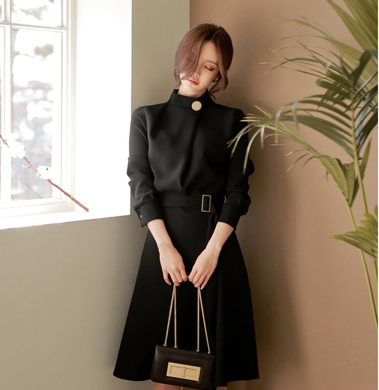 韓国 ブラック ドレス フェミニン お洒落♪