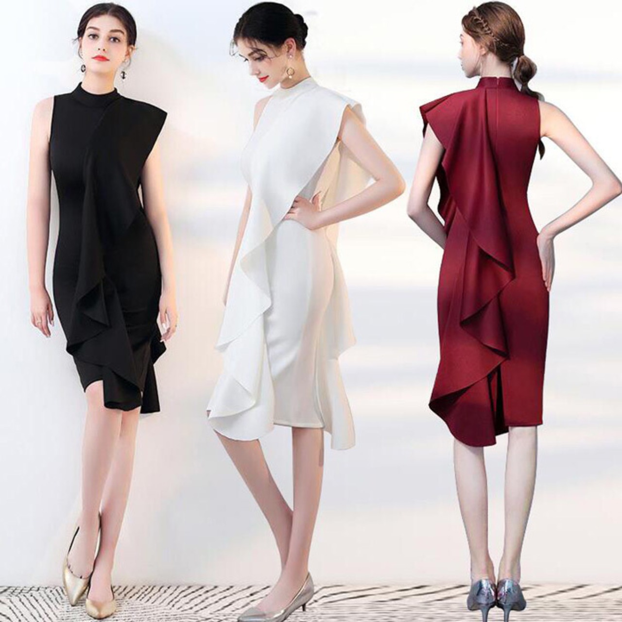 パーティドレス ワンピース ワンショルダー フリル フレア