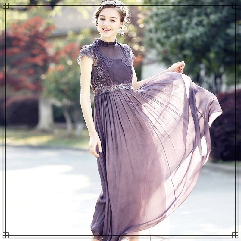 ★ワンピース 刺繍 ハイウエスト プリーツ シフォン ドレス