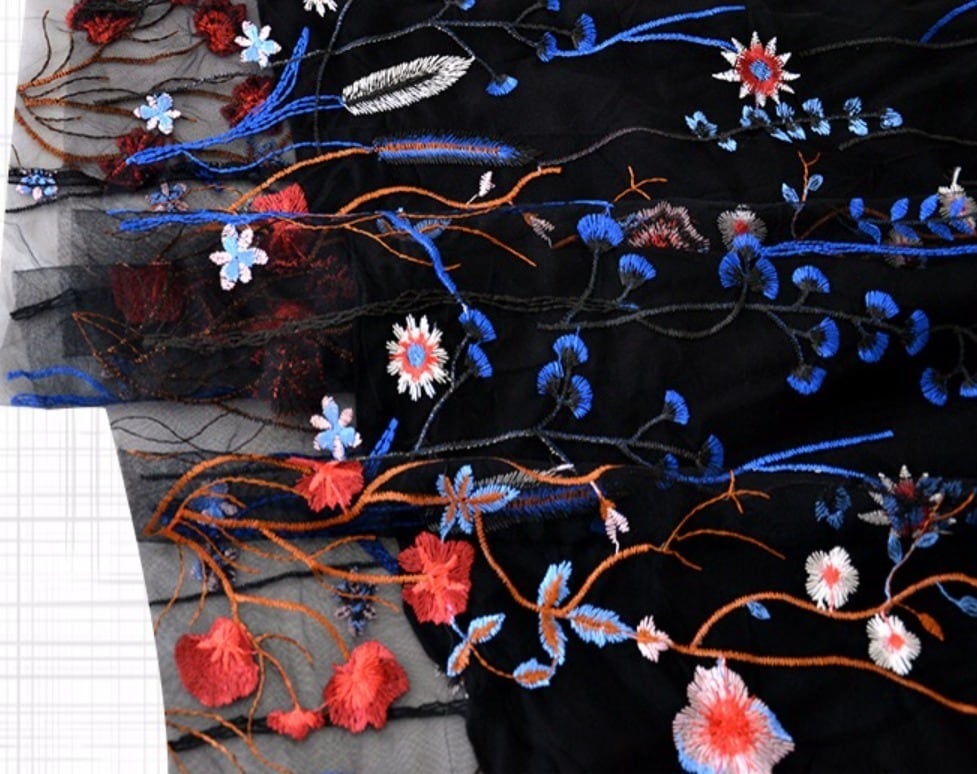 シースルー美しい花柄刺繍 ロングワンピース パーティードレス