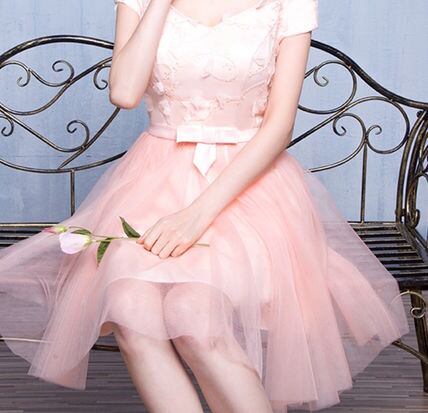 お嬢様風ふんわりフレアパーティードレス 結婚式二次会発表会 F