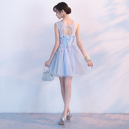 水色お花モチーフパーティードレス チュール 結婚式 二次会 衣装