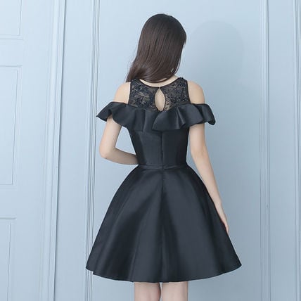 フリルの可愛い ブラック パーティードレス ミニ 発表会 演奏会