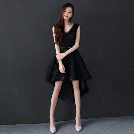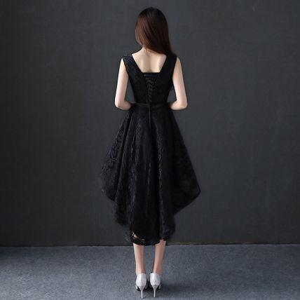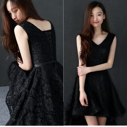 黒ノースリーブリボンベルトパーティードレス 膝丈 結婚式 衣装