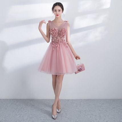 ピンク 花モチーフパーティードレス 結婚式 二次会 キャバ 衣装