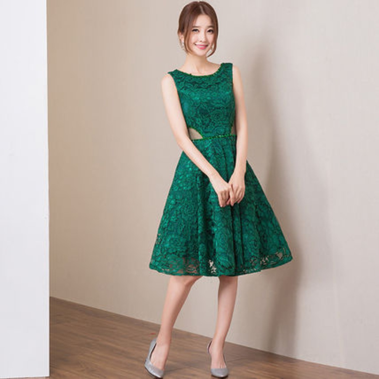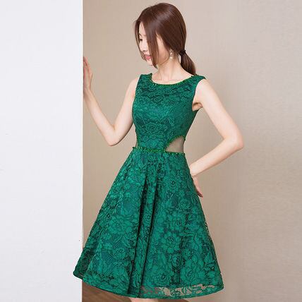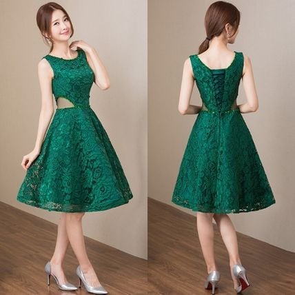 緑レースパーティードレス 膝丈 発表会 結婚式 二次会 演奏会