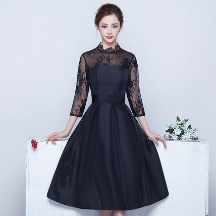 七分袖フレア透けパーティードレス 結婚式 二次会 キャバ 発表会