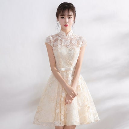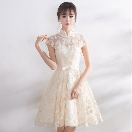 可愛い白 ふんわりパーティードレス レース 結婚式 二次会 衣装