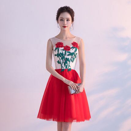 薔薇刺繍パーティードレス ノースリーブ 膝丈 結婚式 キャバ