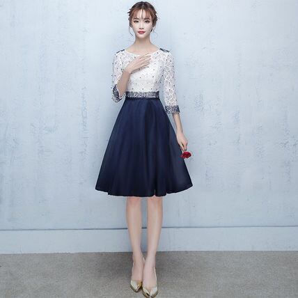 レース切り替え パーティードレス 膝丈 結婚式 演奏会 式典 A