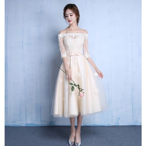 パーティードレス 結婚式 ドレス Aライン 二次会 ドレス ウェディングドレス ミモレ丈 二次会ドレス 花嫁 パーティドレス 披露宴 お呼ばれドレス 卒業式as0215