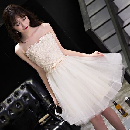可愛いチューブトップパーティードレス 結婚式二次会発表会