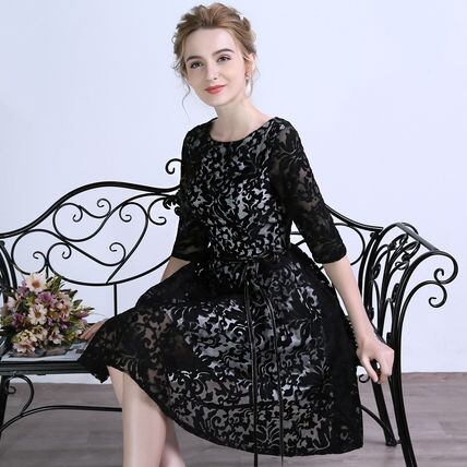 五分袖黒パーティードレス 膝丈 結婚式二次会 キャバ 発表会衣装