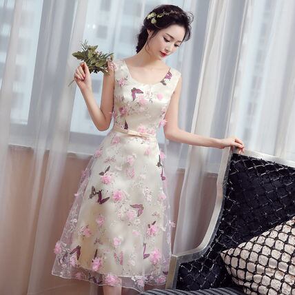 華やか バタフライ柄ノースリーブパーティードレス 結婚式