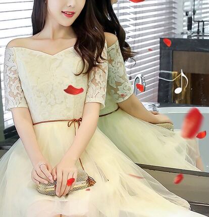 お嬢様風ふんわりチュールパーティードレス 結婚式発表会衣装 C