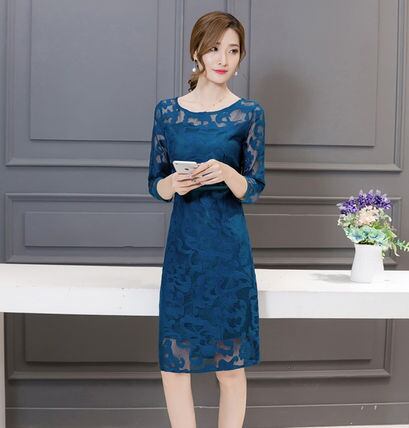 透け感の大人っぽいワンピース 七分袖 パーティードレス
