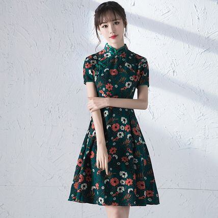緑 花柄 チャイナドレス風パーティードレス 結婚式 コスプレ