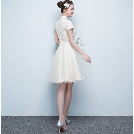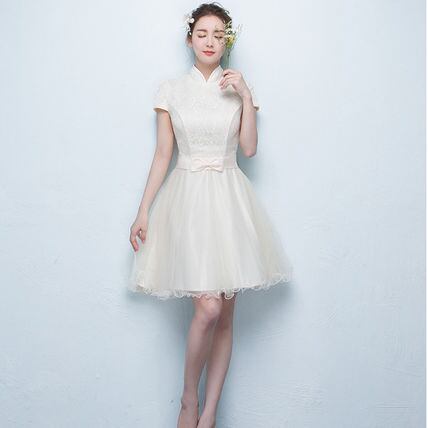 半袖 ホワイトパーティードレス 光沢 サテン 発表会 演奏会 式典