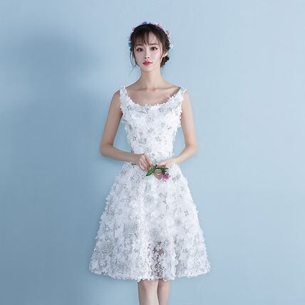 花たっぷり白パーティードレス 膝丈 結婚式 二次会 キャバ ママ