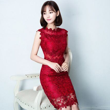 タイト ノースリーブ パーティードレス 赤 結婚式 演奏会 キャバ