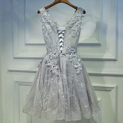 シルバーグレー レース綺麗な パーティードレス フレア チュール