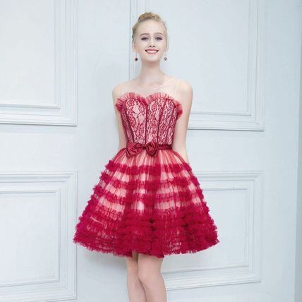 チューブトップ風パーティードレス レース 結婚式二次会演奏会