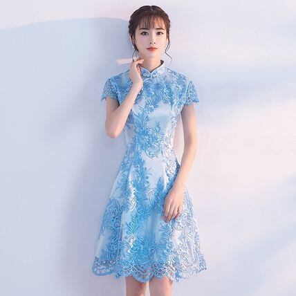 レース 水色フレアパーティードレス 結婚式 二次会 キャバ 衣装