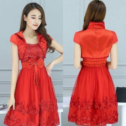 ボレロセット パーティードレス 赤 結婚式 二次会 発表会 膝丈