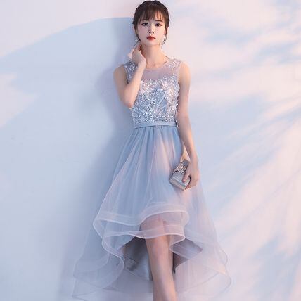 フィッシュテール スカート 水色フレアパーティードレス 結婚式 二次会