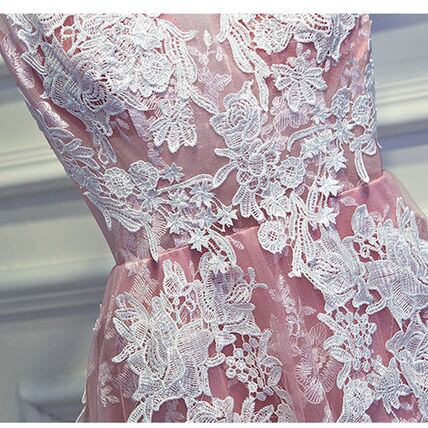 刺繍重ね透け感デザイン ピンク パーティードレス カップ付 式典