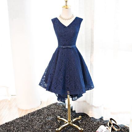 後ろ下がりデザインネイビーパーティードレス 結婚式 二次会