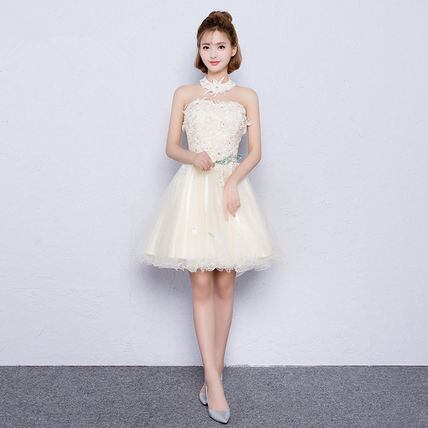白ミニ丈パーティードレス 膝丈 結婚式ウエディング二次会