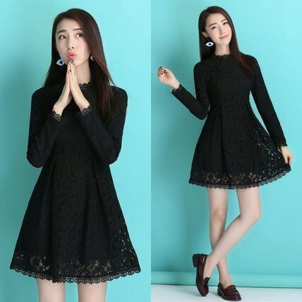 黒レース ミニパーティードレス 長袖 ワンピース 結婚式 衣装