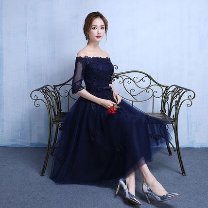 オフショルダーレースパーティードレス ロング ミドル丈 結婚式