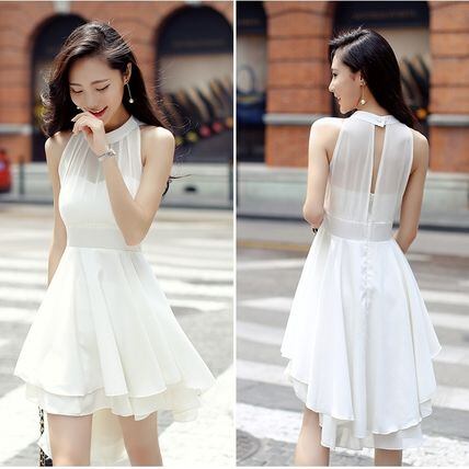 後ろ下がりチュールパーティードレス 黒白 結婚式 セクシー 衣装