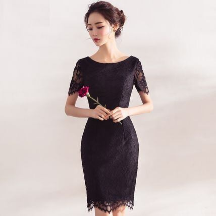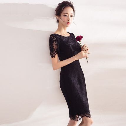 半袖黒タイトパーティードレス 結婚式 二次会 キャバ ブラック