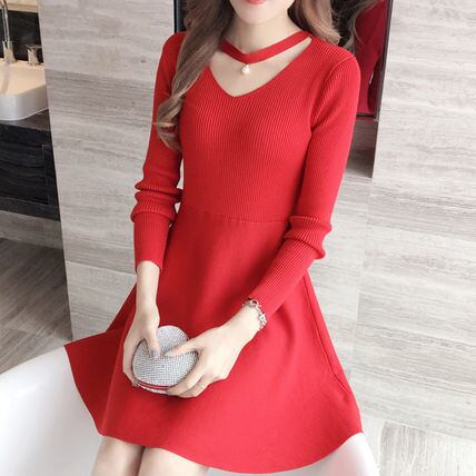 ネックデザインがオシャレ 長袖パーティードレス ワンピース