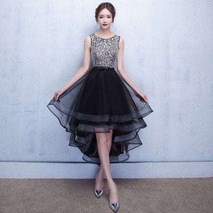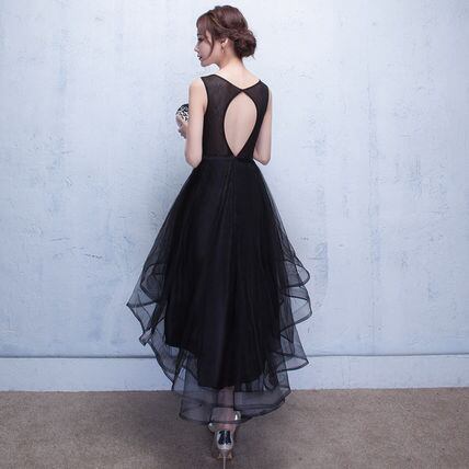 後ろ下がり チュールたっぷり フリルパーティードレス 結婚式