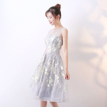 可憐な花柄水色パーティードレス 膝丈 結婚式 二次会 発表会