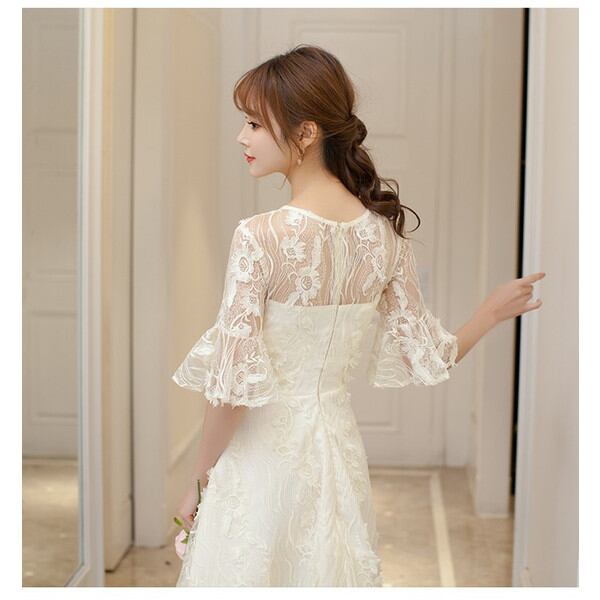 パーティードレス 結婚式 ワンピース ドレス 袖あり ウェディングドレス 二次会 パーティドレス お呼ばれドレス 披露宴 シャンパン色 結婚式 ドレスwx8075