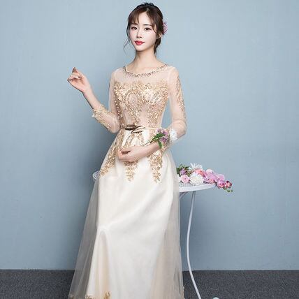 長袖ロングシースルーパーティードレス マキシ 結婚式 演奏会