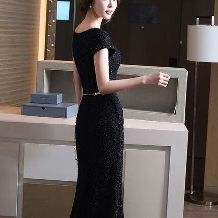 黒ロングパーティードレス ブラック フォーマル 結婚式 二次会
