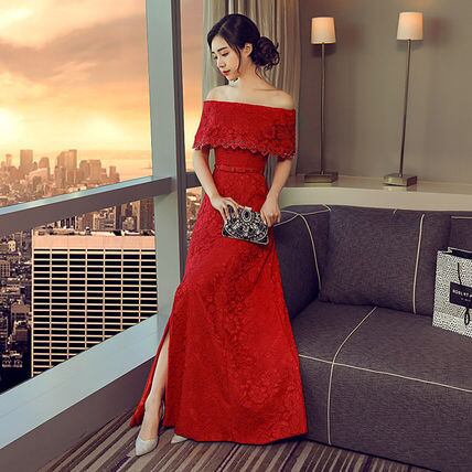 赤 ロングパーティードレス マキシ タイト 結婚式 二次会 演奏会