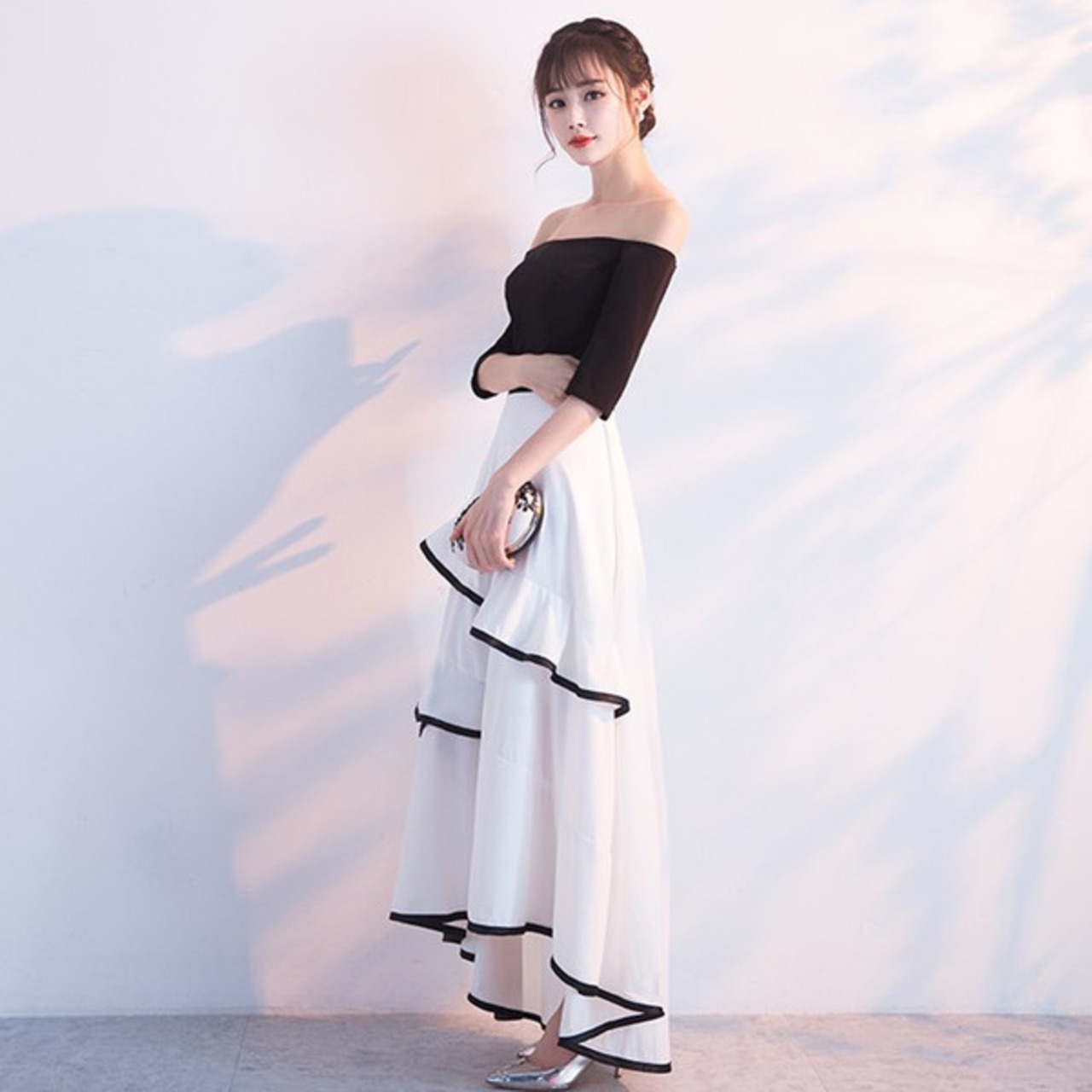 ロングドレス 演奏会 ドレス オフショルダー パーティードレス 結婚式 ドレス ロング丈 ウェディングドレス ピアノ パーティードレス 二次会 ドレス gm5201