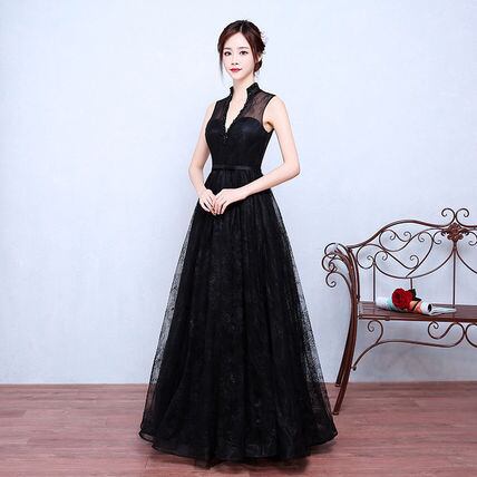 黒ロングパーティードレス マキシ 結婚式 二次会 演奏会 発表会