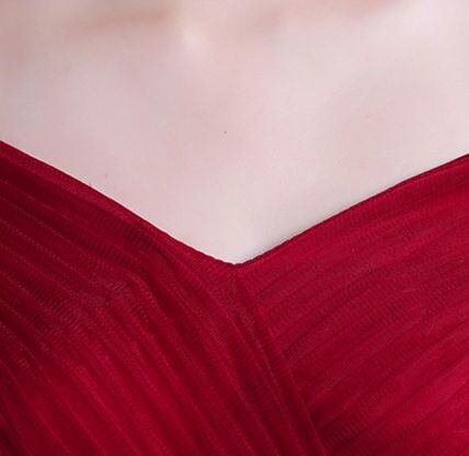赤ピンクふんわり揺れるロングパーティードレス 結婚式二次会