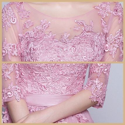 七分袖レースパーティードレス チュール マキシ丈 発表会演奏会