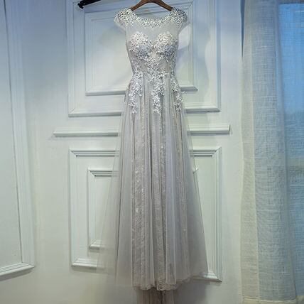 刺繍が綺麗 ロングパーティードレス シルバーグレー 二次会